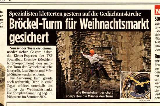 Ob spektakuläre Einsätze an Kirchtürmen oder präzise Arbeiten in luftiger Höhe – unsere Arbeit macht Schlagzeilen. Hier finden Sie eine Auswahl von Presseberichten über Projekte der Lengert Industrieklettertechnik GmbH.